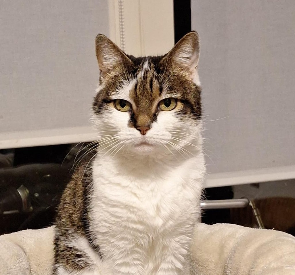 Onze 13 jarige (2025) Lady. Lady is liefdevol opgenomen door een collega van ons. Ze vond het daar wat druk en liet zich daardoor ondersneeuwen. Ze heeft behoefte aan rust en aan meer aandacht. We hopen dat ze dat bij ons kan vinden. We weten in de korte tijd dat ze hier nu is in elk geval al dat ze een enorme knuffelkont is. Daar kan ze geen genoeg van krijgen. Lady was afstandskat bij de stichting waar ze vandaan kwam.